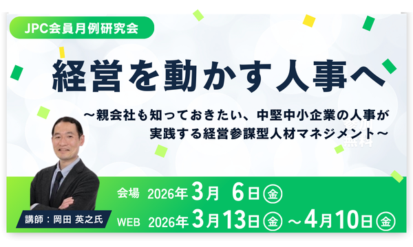 【3/6(金) 開催】JPC会員月例研究会『経営を動かす人事へ』